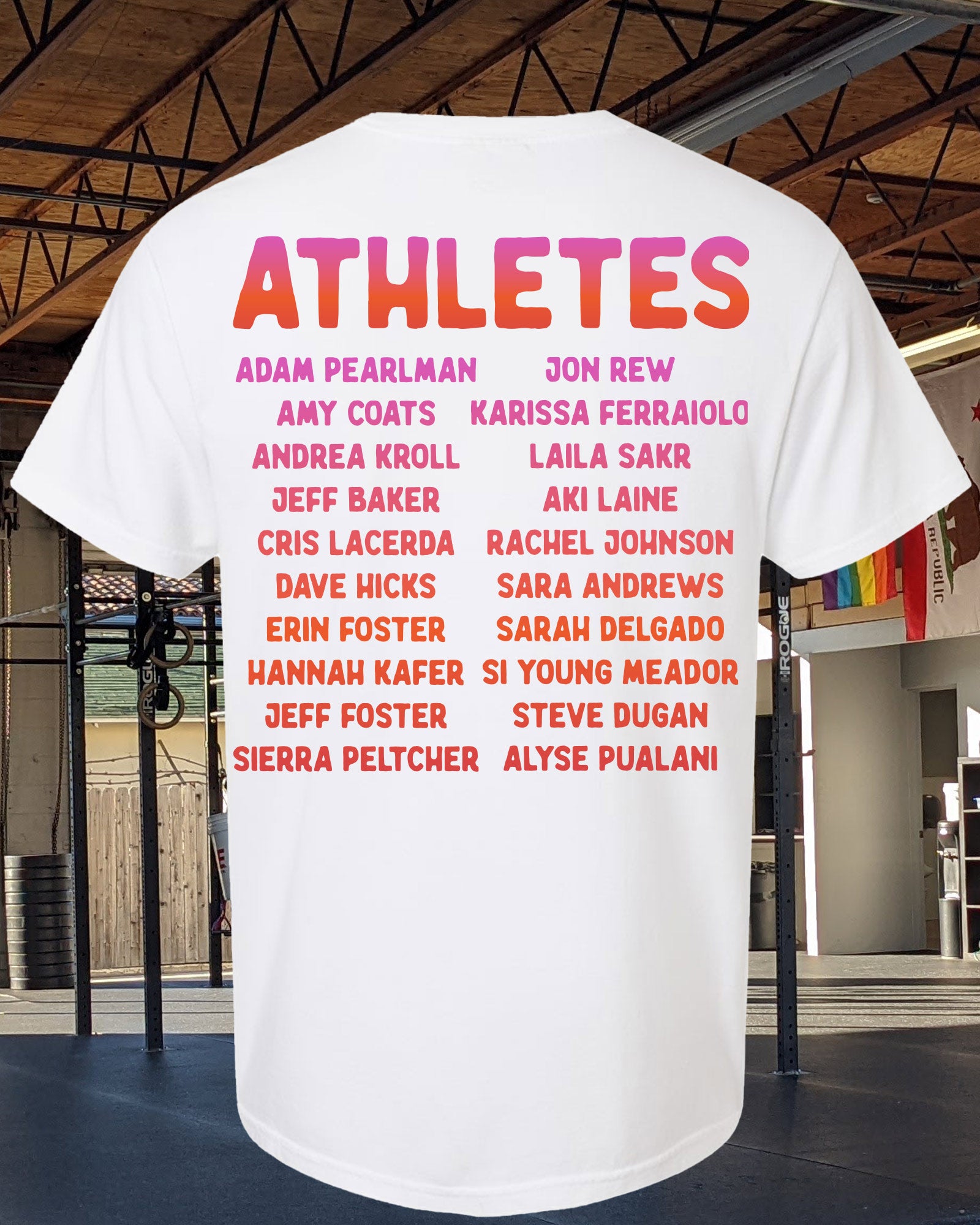 Heatmap gradient design with Wodapalooza athletes names on the back! You can select tank or unisex tee and white or black.